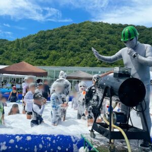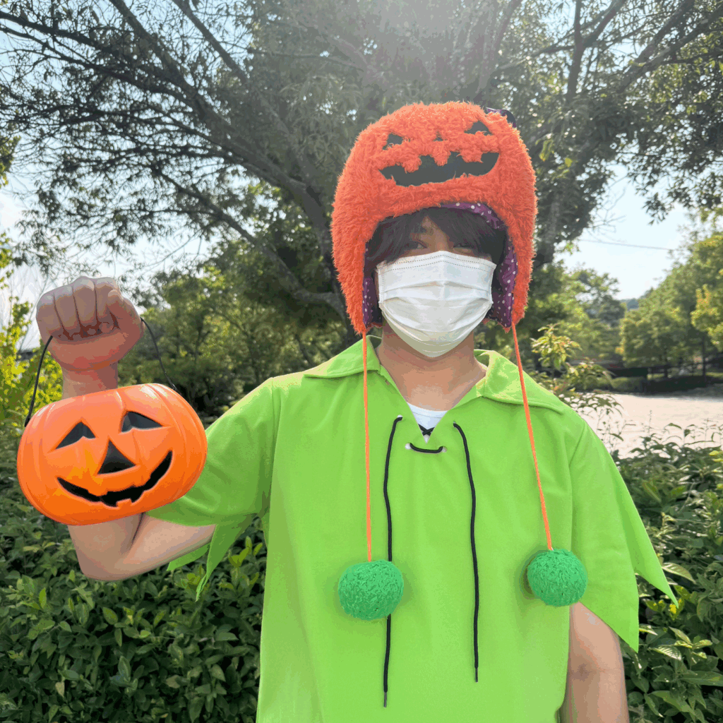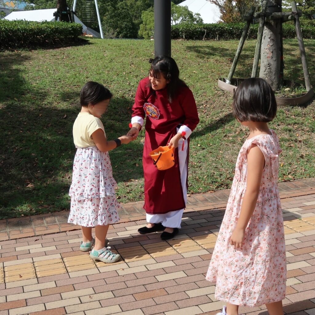 まずはこちら!毎年恒例の仮装をしたスタッフによるお菓子配り!🍭