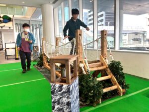 →ぐらぐらと揺れる吊り橋を渡って探検開始!